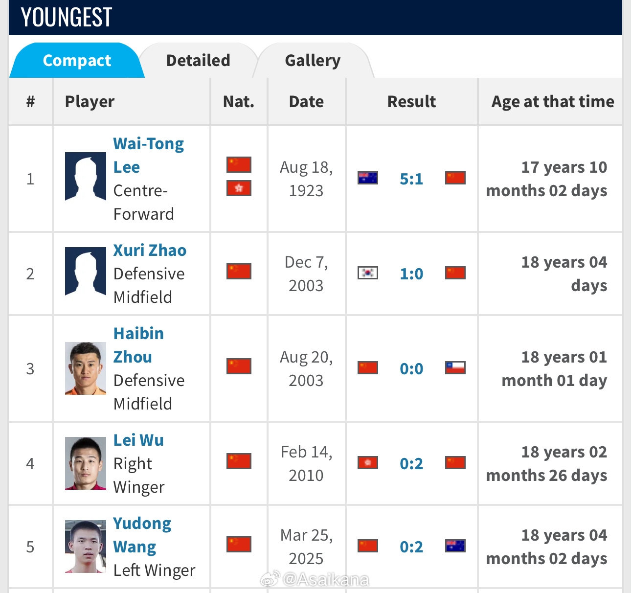 2025-03-26 12:02:37不算上古大神,王鈺棟在國足A級最年輕出場里排第四(18歲4個月)