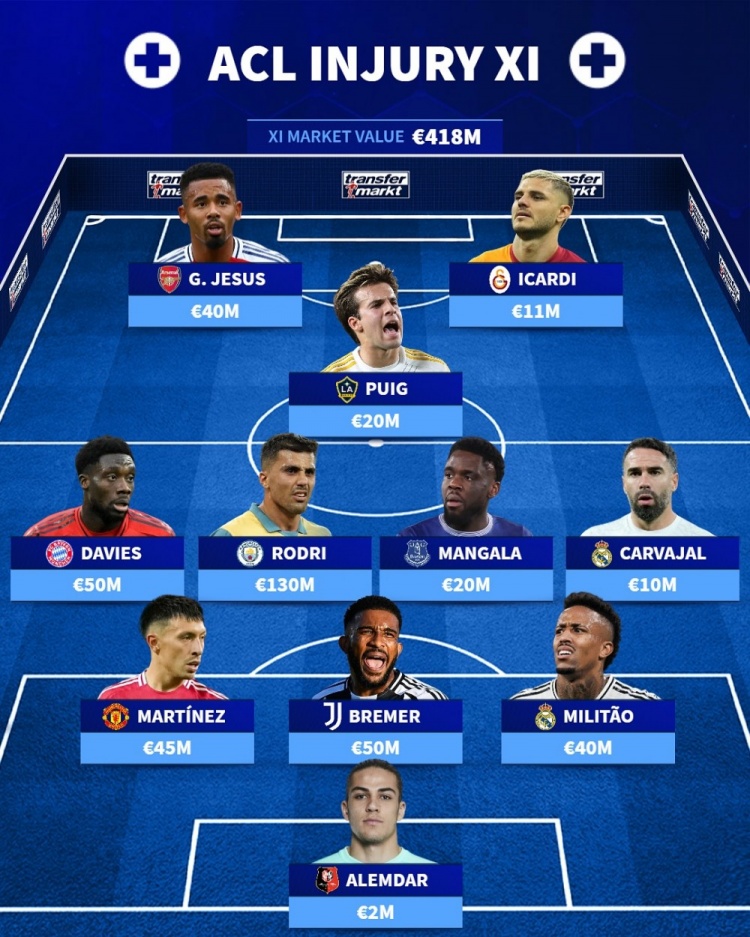 2025-03-27 12:03:00德轉排本賽季十字韌帶受傷陣:羅德里、戴維斯、二弟、米利唐在列