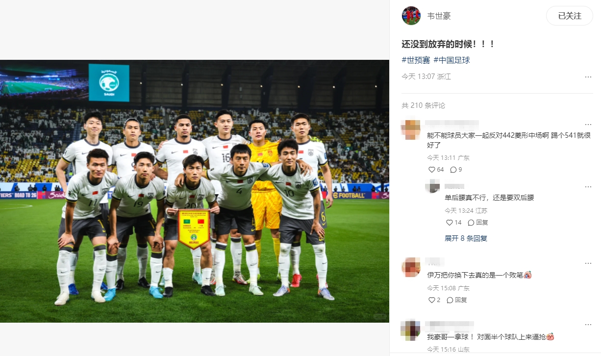 2025-03-27 18:00:39國足遭遇三連敗,韋世豪:還沒到放棄的時候!!!