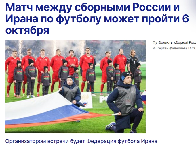 2025-03-27 18:00:56即將解禁!俄羅斯將于10月6日與伊朗進行友誼賽