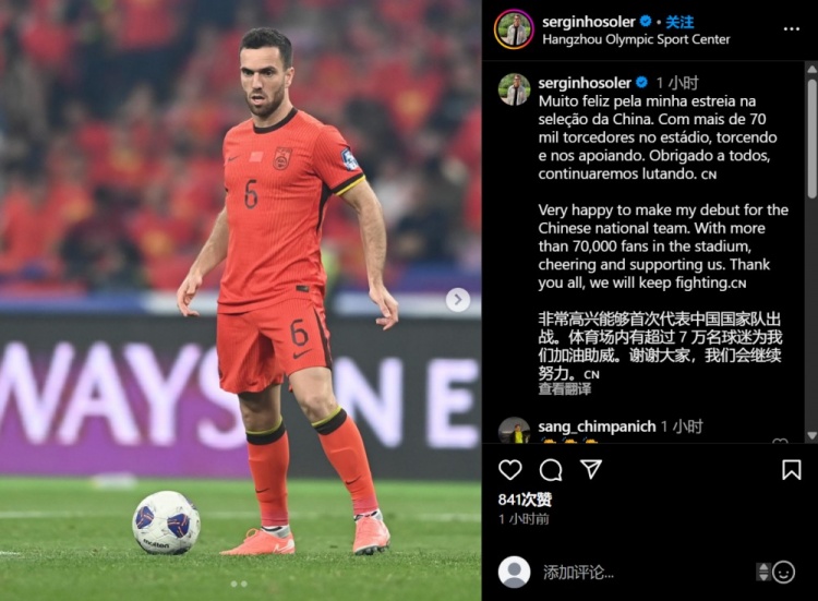 2025-03-28 06:00:39塞爾吉尼奧社媒:非常高興能夠首次代表國足出戰(zhàn),會繼續(xù)努力