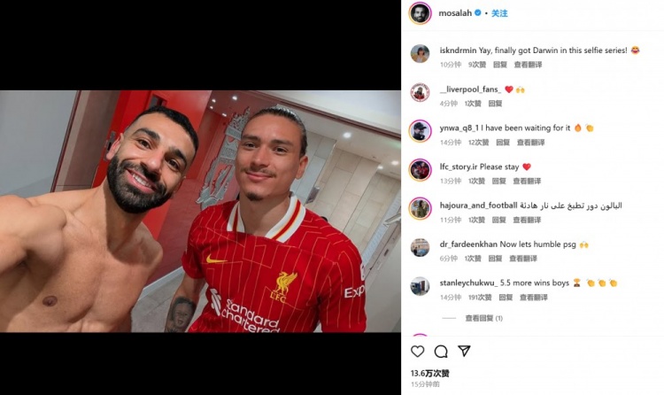 2025-03-09 21:15:00法老嚴(yán)選!薩拉赫社媒曬與努涅斯合照,球迷調(diào)侃:終于輪到他了