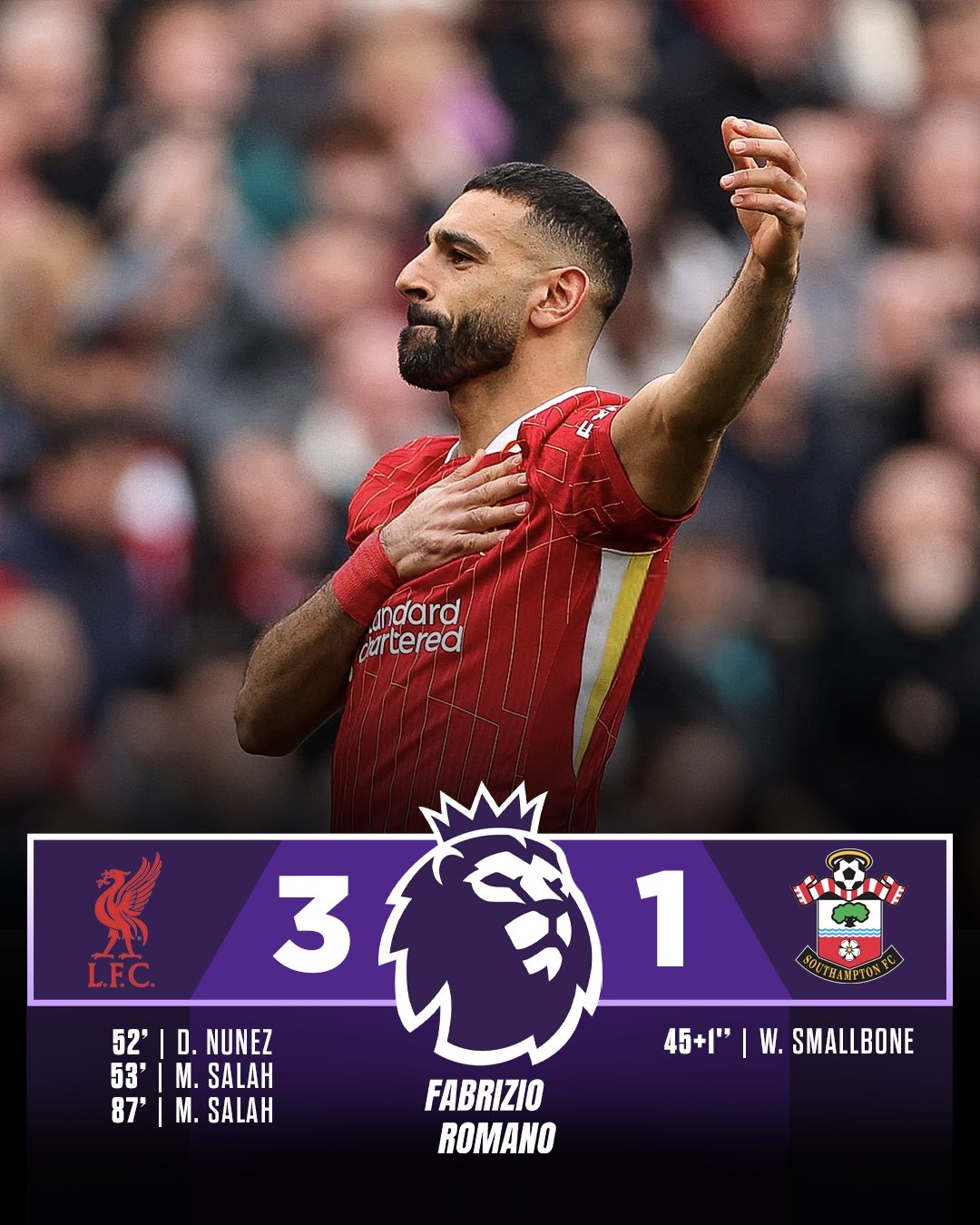 2025-03-09 21:15:18薩拉赫聯賽對陣南安普頓打進10球,追平伊恩-拉什保持的進球紀錄