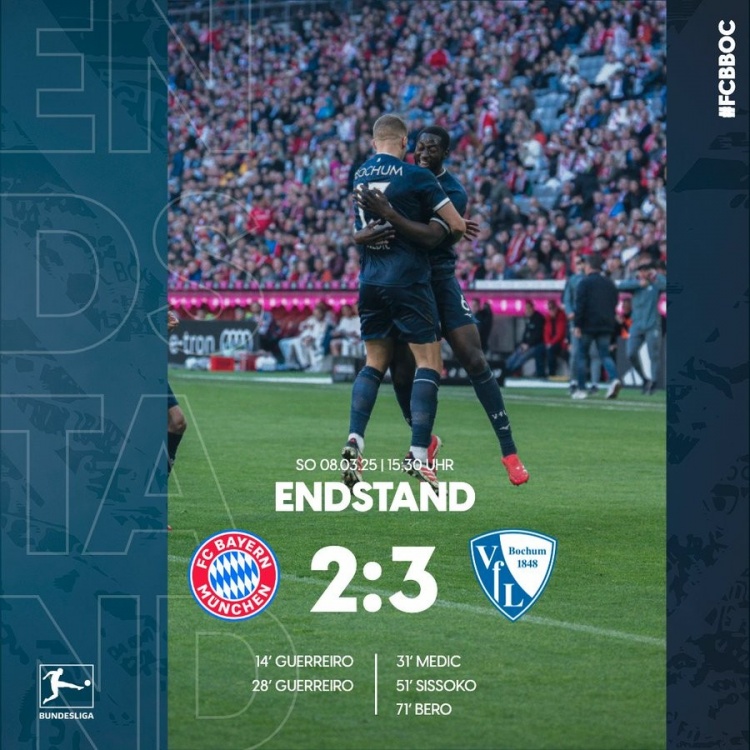 2025-03-09 21:15:28在德甲落后拜仁2球但最終逆轉獲勝!波鴻是歷史第4隊